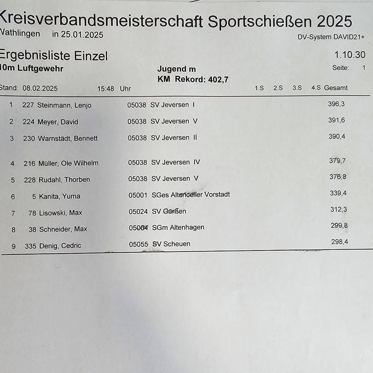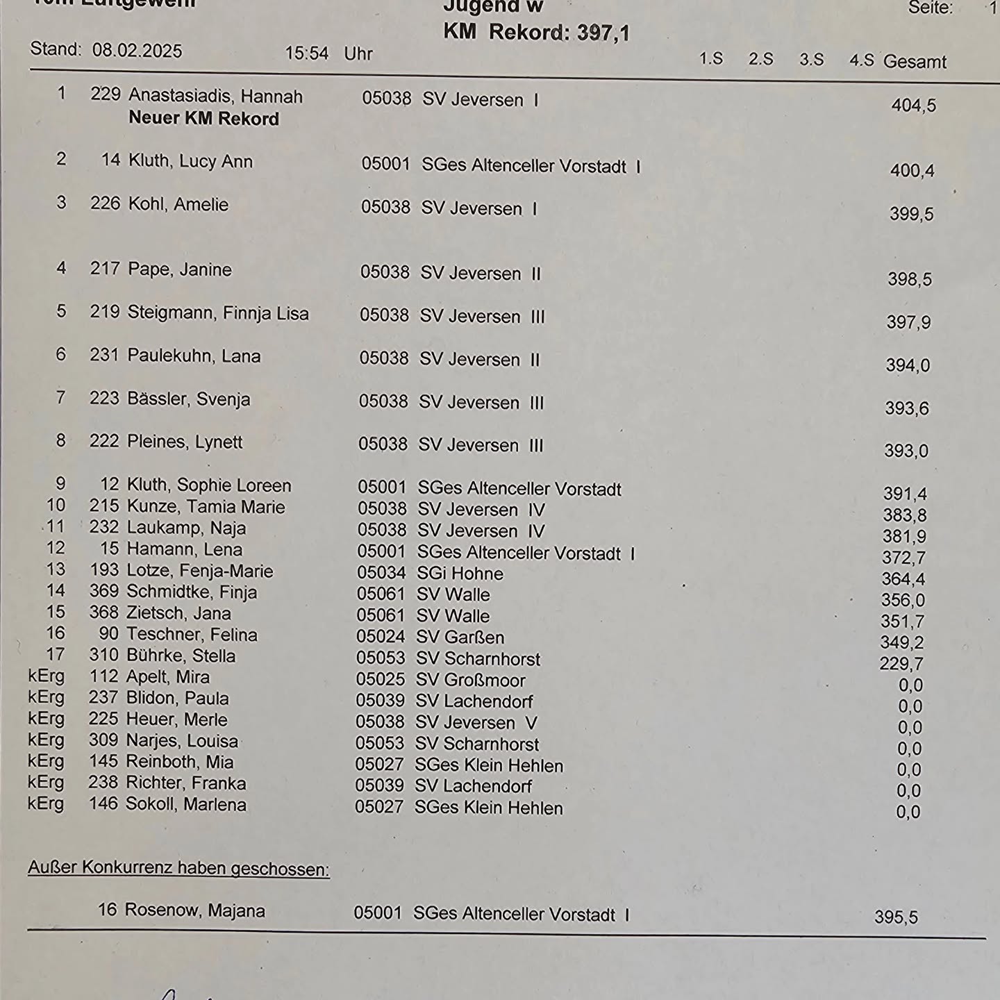 Kreismeisterschaft Luftgewehr Jugend ist beendet. 💚lichen Glückwunsch zu den super Ergebnissen und den beiden neuen Kreisrekorden 🦖